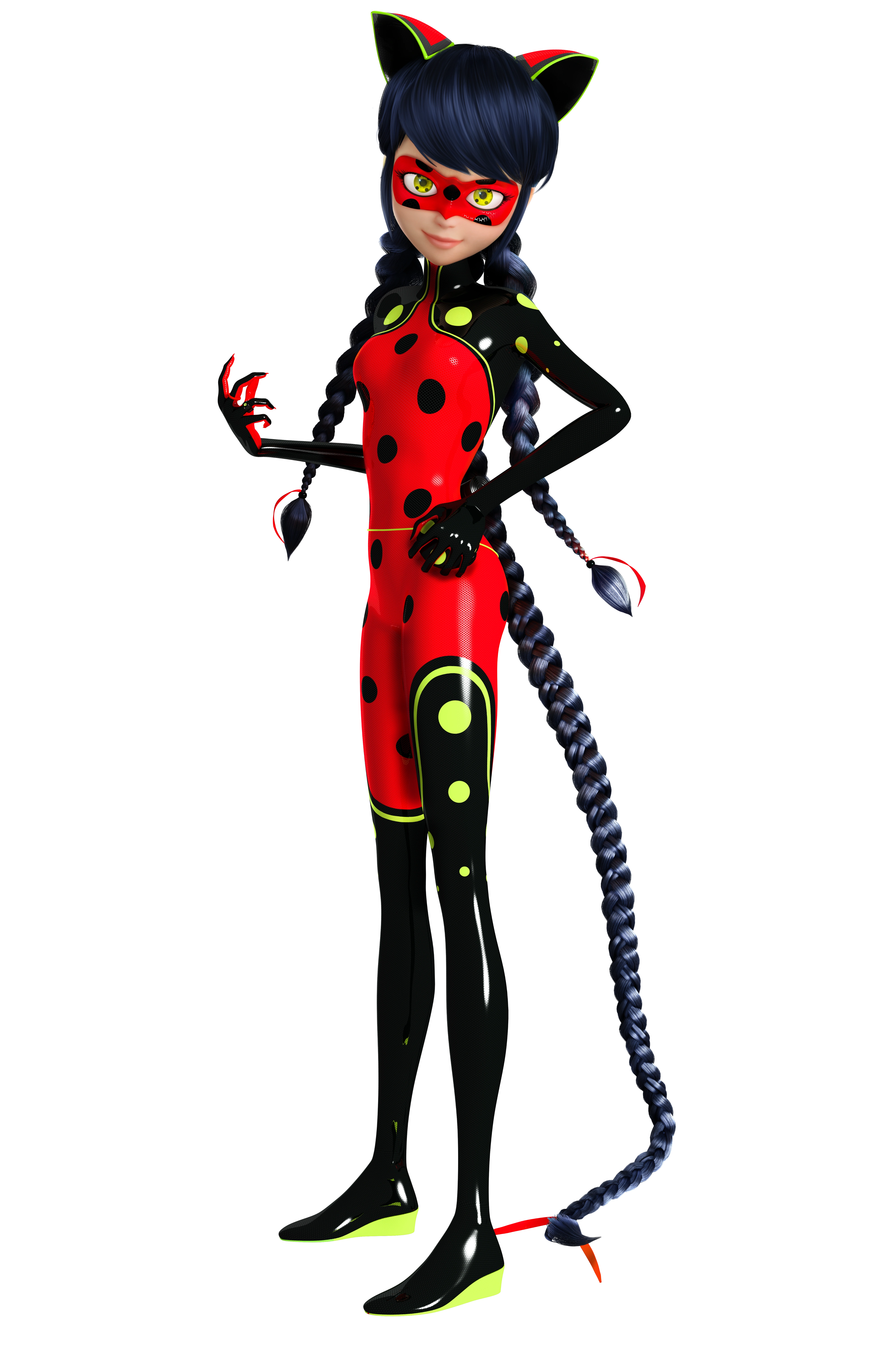 Marinette Dupain-Cheng, also known as her superheroine identity Ladybug, is one of the two titular main protagonists (alongside Cat Noir) of the Miraculous: Tales of Ladybug & Cat Noir series. She was a normal Chinese-French teenage girl who lived an ordinary life until she suddenly received a Miraculous, a magical jewel that grants superpowers to its wearer and also has a kwami sealed inside it.